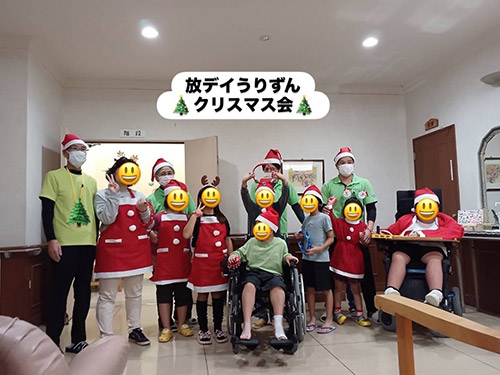 与那原町にある介護老人保健施設うりずんの5階にある放課後等デイサービスうりずんの昨年のクリスマス会の様子です。